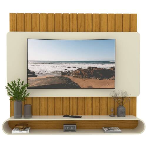 Estrutura: 100% MDFAcabamento: Pintura U.V com acabamento atóxicoPorta: NãoNicho: Sim, com design curvoSuporta: Ideal para TV de ate 75”Diferencial: Design Elegante e moderno; Painel Frontal com réguas Laterais, ripas autênticas; Painel Frontal com cantos arredondadosDimensões do produto montado