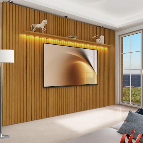 - A instalação do painel na parede é feita por um sistema de encaixe, fixado por uma régua.