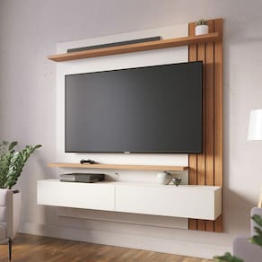 Minimalista e clean, o Home Suspenso Juriti é a escolha perfeita para quem busca um móvel funcional que otimize o espaço para a TV, sem abrir mão de televisores maiores. Ideal tanto para a sala de estar quanto para quartos, este home possui ripados decorativos em uma das laterais, proporcionando um toque de elegância. Com uma prateleira superior e outra inferior, além de duas portas basculantes com espaço interno, ele oferece praticidade e organização para acomodar seus objetos. Suporta TVs de até 65 polegadas fixadas no painel, tornando-se uma solução completa e estilosa para seu ambiente.