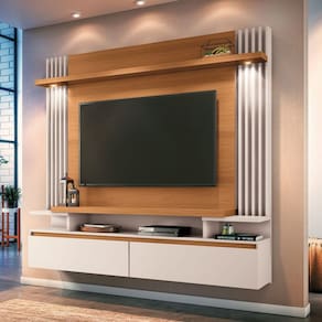 Pensando em renovar o ambiente de sua Sala de Estar? Um produto com matéria-prima reforçada em MDP e MDF de qualidade e um visual bonito? Acabou de encontrar! Home Suspenso Cosmo é perfeito. Ideal para Tv de até 55 polegadas. São 2 luminárias LED que realçam e valorizam o design do mobiliário e 2 portas basculantes com dobradiças metálicas. Deixe sua sala de estar como sempre sonhou, com bom gosto e qualidade.