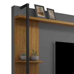 ESPECIFICAÇÕES: • Estrutura em MDF • Pintura UV • Prateleiras • Nichos • Detalhe aplique de metal 20x20 com pintura eletrostática • Amplo espaço interno • Ideal para TV até 65”