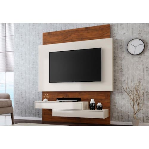 Painel Home Suspenso para TV TB120 Off White/Nobre, ideal para compor sua sala de estar com elegância e qualidade, design robusto e amplo com bancada para decoração, DVD ou Blu-Ray, 2 gavetas com ótimo espaço interno, estrutura 100% MDF e acabamento em pintura UV, que oferece uma maior resistência e durabilidade ao produto. Ideal para TV de até 42 Polegadas. Confira e compre já!