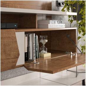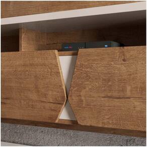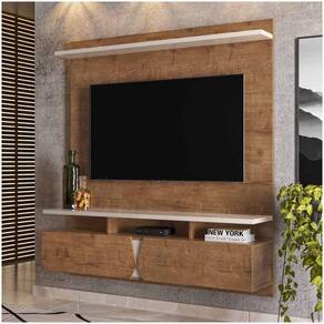 Painel ímola Madero Canela/Off White para TV até 55 Polegadas com 01 Porta Basculantes com Articulador e Prateleiras - Lukaliam