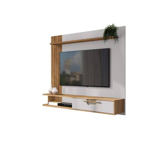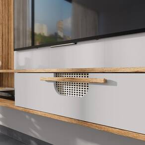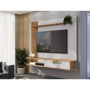 Produto: Painel Jeri Prateleira superior 25mm; Acabamento lateral fresado; Design orgânico; Porta basculante; Tela plástica remetendo ao ratan natural. Cor: Cinamomo/Off-White Altura (cm): 136 Largura (cm): 160 Profundidade (cm): 32,5 Peso (Kg): 37,6 Material e Espessura: Estruturado em MDP 12mm; Tampo, Base, Laterias, Divisórias me Porta em MDP 15mm; Prateleira Superior MDP de 25mm e Painel Frisado em MDF 12mm Acabamento: Semi-Brilho Quantidade de Portas: 1 Quantidade de Gavetas: NA Número de Nichos: 1 Externo / 1Interno Quantidade de Prateleiras: 1 Tipo de Pés: NA Peso Suportado: 50 kg Medidas do Espaço para TV: 90,8 x 160 Ideal da TV's de: 65 pol Necessita Montagem: Sim Instruções e Cuidados: Recomenda-se limpar o produto com flanela ou pano macio seco, não utilizar produtos abrasivos, desengordurantes, álcool ou solvente. Mantê-lo em lugar livre de umidade e/ou exposição direta ao sol. Garantia: 3 Meses Conteúdo da Embalagem: 1 Painel e 1 Manual de montagem