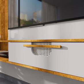 Produto: Painel Jeri Prateleira superior 25mm; Acabamento lateral fresado; Design orgânico; Porta basculante; Tela plástica remetendo ao ratan natural. Cor: Naturalle/Off-White Altura (cm): 136 Largura (cm): 160 Profundidade (cm): 32,5 Peso (Kg): 37,6 Material e Espessura: Estruturado em MDP 12mm; Tampo, Base, Laterias, Divisórias me Porta em MDP 15mm; Prateleira Superior MDP de 25mm e Painel Frisado em MDF 12mm Acabamento: Semi-Brilho Quantidade de Portas: 1 Quantidade de Gavetas: NA Número de Nichos: 1 Externo / 1Interno Quantidade de Prateleiras: 1 Tipo de Pés: NA Peso Suportado: 50 kg Medidas do Espaço para TV: 90,8 x 160 Ideal da TV's de: 65 pol Necessita Montagem: Sim Instruções e Cuidados: Recomenda-se limpar o produto com flanela ou pano macio seco, não utilizar produtos abrasivos, desengordurantes, álcool ou solvente. Mantê-lo em lugar livre de umidade e/ou exposição direta ao sol. Garantia: 3 Meses Conteúdo da Embalagem: 1 Painel e 1 Manual de montagem