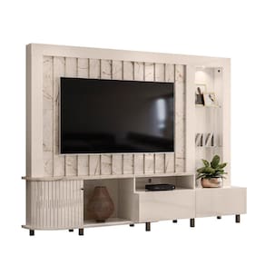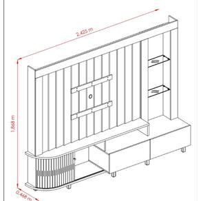 Le Mans, um produto robusto e elegante que vai se tornar a estrela da sua sala de estar! Com 2,425m de largura, ele suporta TVs de até 70 polegadas. Um destaque nesse home é seu painel que traz o conceito do ripado com chapas em diagonal, que proporciona volumetria e a ideia de movimento. O requinte fica por conta das prateleiras de vidro 5mm, que combinam com o LED, trazendo um charme e iluminação para o ambiente. Já a organização fica por conta das 2 gavetas com corrediças telescópicas e seus nichos. Trouxemos nesse móvel uma inovação, e que ainda não foi visto no mercado brasileiro de móveis. A porta que faz curva! Uma porta em MDF deslizante e flexível acompanha as curvas da base e do tampo. Confira as cores disponíveis e traga inovação e sofisticação ao seu lar.