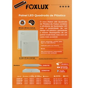 Há mais de 20 anos, a Foxlux é referência no mercado de Iluminação, Ferramentas, Materiais Elétricos e Utilidades. Com presença em todo o Brasil, a marca oferece produtos que são sinônimos de qualidade e segurança, reconhecidos tanto no ambiente residencial quanto no comercial. Ao escolher Foxlux, você investe em inovação, durabilidade e em uma empresa comprometida com a satisfação do cliente.