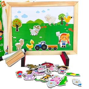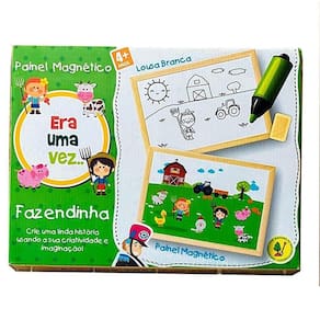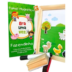 Painel Magnético Era Uma Vez..Fazendinha Brinquedo Educativo O Painel Magnético Era Uma Vez... Fazendinha é um conjunto com lousa e peças magnéticas. A criança pode exercer sua imaginação de muitas formas. Vem com uma caneta para escrever na lousa, ou desenhar e apagar tudo depois. Vem também com peças magnéticas, para grudar na lousa.Desta forma é possível criar um cenário e a narrar uma história bem divertida com montagens variadas. Usando ambos recursos, as peças e a caneta, é possível também desenhar e grudar as peças magnéticas. O enredo vai ficar rico e divertido. Brinquedos de arte e desenho, usando magnetismo permite que a criança desenvolva habilidades motoras, inteligência espacial, coordenação e também criatividade. - Marca: Bate Bumbo- Material: Madeira - Produto Lacrado- Faixa etária: a partir de 4 anos- Dimensões: 31 x 5 x 24 cm- Contém: 27 Peças magnéticas, 1 painel magnético dupla face, 1 Canetão, 1 Apagador e 2 Suportes.- Peso:800 gramas- Garantia: 90 dias- EAN: 7898927099572- INMETRO: CE-BRI/BRICS 00056-14 NM 300/2002 Segurança do Brinquedo