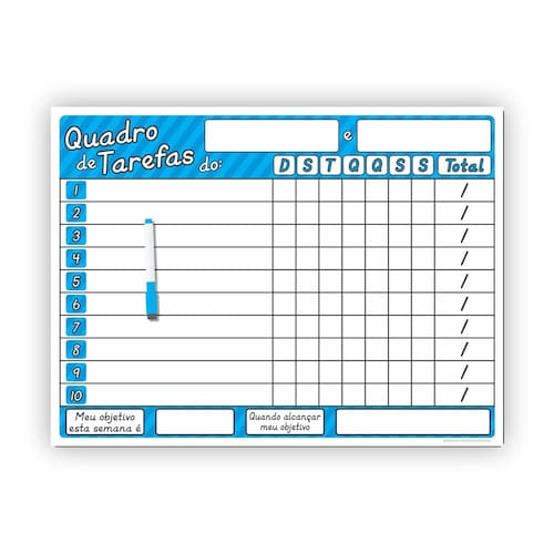 Os Nossos Imãs para geladeira são impressos com tinta Eco-Solventes com qualidade fotográfica em Vinil Autocolante e depois fixado em uma Manta Magnética com 0,8 mm espessura, ideias para serem fixados em geladeiras. São ideais para quem quer fazer mudanças no ambiente da cozinha de sua casa sem gastar muito, além do seu preço acessível dispensa a contratação de profissionais, já que você mesmo a pode fazer a instalação. Painel Magnético Quadro de Tarefas. Medida do painel: 40 cm x 30 cm. O painel magnético colorido é perfeito para recompensar o bom comportamento das crianças em casa, creches ou escolas. Como utilizar: 1- Relacione as tarefas; 2- Marque se as mesmas foram concluídas ou não; 3- Defina o nº de pontos e a recompensa por semana. uma caneta azul com imã e apagador + recarga azul Recomendações: - Faça a limpeza periódica do seu quadro de tarefas com removedor. Prazo de envio de até 2 . Marca: Não Informado Ean: 7898667231195
