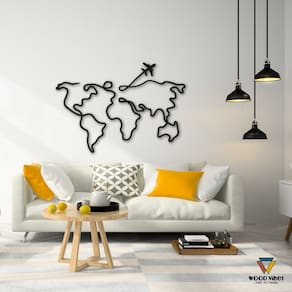 Painel Mapa mundi decorativo exclusivo, fabricado em MDF laminado e cortado a laser garantindo durabilidade e beleza.