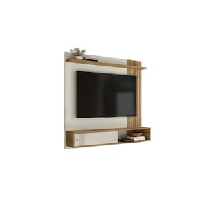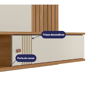 Painel Milão Flex para TV até 55” com Detalhe ripado Off White/ Nature - Peternella - Marrom