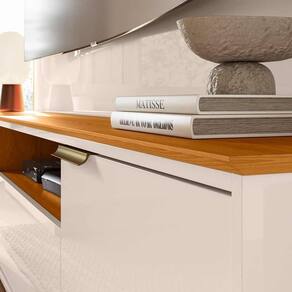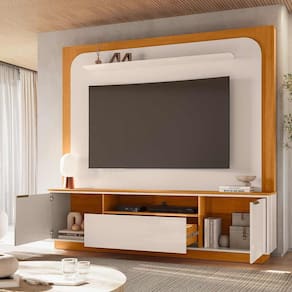 Perfeito para quem busca design, funcionalidade e ótimo custo-benefício.Painel com detalhes curvos, bordas chanfradas no tampo e prateleira superior, e estrutura em MDP de 15 e 25 mm. Ideal para quem busca um produto moderno, organizado e resistente.