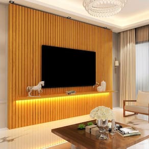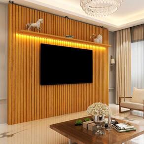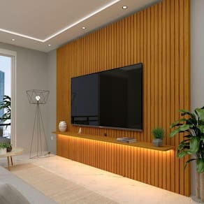 Com LED em luz quente com difusor e ripas autenticas, o Painel Nobre Ripado trara mais exclusividade e vivacidade para sua sala de estar.