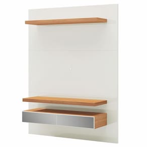 Uma das suas grandes vantagens é a prateleira superior, que não só serve como suporte para livros e objetos decorativos, como também oferece um espaço inteligente para iluminação, conferindo um toque acolhedor ao ambiente. A parte inferior, com gavetas espelhadas, proporciona a organização perfeita para eletrônicos e acessórios, mantendo tudo à mão e, ao mesmo tempo, em ordem. Para completar, esse painel suspenso é resistente e ideal para suportar TVs de até 55 polegadas, tornando-se uma peça versátil para quem busca modernidade sem abrir mão da praticidade.