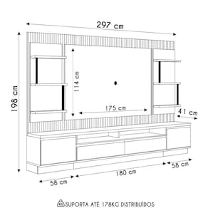 Altura: 198 cm | AssemblyRequired: Sim, sugerimos a contratação do nosso serviço de montagem (para os CEPs em que o serviço está dispon | Color: TauariOff White | ColorFamily: TauariOff White | ColorSimple: TauariOff White | ColorSupplier: TauariOff White | Cor: TauariOff White | Gênero: Unisex | Largura: 297 cm | Manual: Sim | Marca: Mpozenato | Material: MDPMDF | MaterialFamily: MDPMDF | Origem: | OriginCountry: | OriginState: PR | Peso: 164 kg | Peso Suportado: 178 kg | ProductHeight: 198 | ProductInstructions: Produto para uso em ambiente interno, nao devendo ficar exposto ao sol, calor e umidade excessivos. | ProductLength: 41 | ProductWarranty: 90 dias após o do produto | ProductWeight: 164 | ProductWidth: 297 | Profundidade: 41 cm | Requere montagem: Sim | SizeDescription: 198 x 297 x 41 cm | SupplierSimpleName: Painel Para 70 Pol com Rack Bancada 297cm Real L06 TauariOff White - Mpozenato | Tipo de : Fabricante