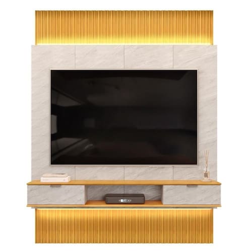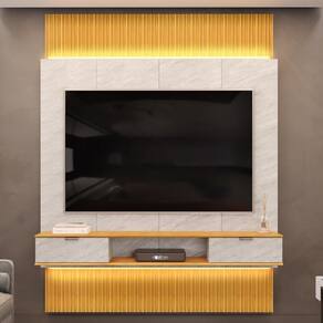 Um Painel de inovador é a definição de funcionalidade e estilo, com um espaço que suporta TVs de até 75 polegadas. Imagine só o melhor do entretenimento para sua família em um móvel tão elegante! E não para por aí, uma bancada suspensa com tampo e base chanfrados, duas gavetas espaçosas com corrediças telescópicas e um nicho para aparelhos eletrônicos ou decorações completam o design. As abas ripadas extensíveis, que vão do piso ao teto, são o toque final e permite que você transforme qualquer espaço com sua estética elegante e iluminação indireta via fitas de LED. Produzido 100% em MDF sustentável, o Painel Extensível não só embeleza sua casa, mas também contribui para a preservação do meio ambiente. É mais do que um móvel, é um upgrade na decoração da sua casa.