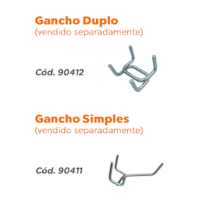 32 ganchos plásticos inclusos, facilitando o acesso às ferramentas
