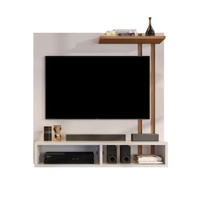 Painel Para Sala TV 32 Polegadas com Nicho e Prateleira Sun - Off White com Nature - RPM Móveis