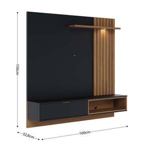 Painel para Suspenso Tocantins Preto Acetinado Noce Milano com Aparador para Sala Riviera Noce Milano Colibri