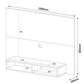 Características Gerais do Produto: - Acabamento: Pintura UV - Acompanha Manual: sim - Altura (cm): 89,50 - Largura (cm): 120 - Profundidade (cm): 28 - Quantidade De Prateleiras: 1 - Suporta TVs De Até: 50 - Peso (Kg): 18,8 - Matéria-prima: MDP - Sistema de montagem: MINIFIX, TAMBOR, PARAFUSOS - Garantia: 3 meses