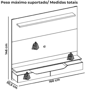 Peso máximo suportado: 50Kg (40Kg painel, base 08Kg e nicho 2Kg)