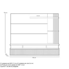 01 prateleira de MDP 37mm e 01 prateleira de vidro 4mm Suporta TV de até 60 polegadas.