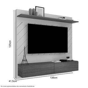 Dimensões do Produto Montado:Altura: 125 cmLargura: 136 cmProfundidade: 41,5 cmObservações:Recomendado para TVs de até 60"Portas com Corrediças MetálicasPrateleira SuperiorProduto confeccionado 100 % em chapas de MDF de 15 mm