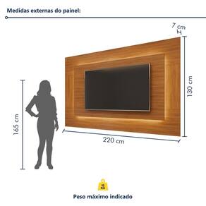 É um painel para salas grandes? Sim, pode ser utilizado na decoração para sala pequena e quanto para sala grande. Produto Montado: Sim Acabamento: Pintura UV Acompanha Lâmpada: Não Ambiente Principal: Sala de Estar codigo_ean: 7900288246134 Complexidade da Montagem: Média: pode ser montado por mais de uma pessoa e/ou necessite de maior conhecimento para montagem Cor: Naturalle Cor do Produto: Naturalle Cor Interna: Naturalle Escala de Brilho: Semi-Brilho Espessura do Espelho: mm Espessura do Painel: 7 cm Fixação na Parede: Sim Ideal para TVs até (Polegadas): 58 Itens Inclusos: 1 Painel e Kit Ferragens Linha ou Coleção: Grécia Manual de Especificação Técnica: https://product-hub-prd.madeiramadeira.com.br/652322156/documents/188df5a9-b7ba-483e-8352-842057f52186dd1214110painelatenas18001.pdf Manual de Montagem e Instalação: https://product-hub-prd.madeiramadeira.com.br/652322156/documents/28a39a38-b6c7-4e9c-8a12-cee268b69cf53198161554117576203237349.pdf Marca: Mavaular Material Principal: MDF Necessita Montagem: Sim Origem do Produto: Nacional Peso: 39,4 kg Possui Espelho: Não Possui iluminação: Sim Possui Passa Cabos: Sim Possui Pés: Não Possui Portas: Não Possui Prateleiras: Não Possui Vidro: Não Recomendações de Uso, Manutenção e Limpeza: Limpar com flanela limpa e seca. Não usar produtos abrasivos. Sistema de Montagem: Parafusos Suporte de TV Universal Incluso: Não