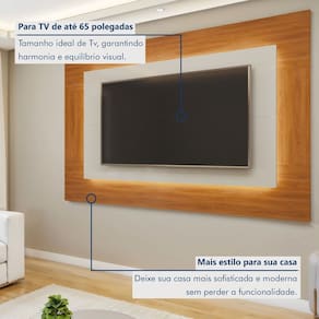 É um painel para salas grandes? Sim, pode ser utilizado na decoração para sala pequena e quanto para sala grande. Produto Montado: Sim Acabamento: Pintura UV Acompanha Lâmpada: 01 Altura do Espelho: cm Altura do Espelho 01: cm Altura do Espelho 02: cm Altura do Espelho 03: cm Altura do Espelho 04: cm Altura do Espelho 05: cm Altura do Espelho 06: cm Altura dos Pés: cm Ambiente Principal: Quarto codigo_ean: 7900288226174 Complexidade da Montagem: Alta: deve ser montado por um montador especializado Cor: Naturalle/Off White Cor do Produto: Naturalle/Off White Cor Interna: Naturalle Escala de Brilho: Semi-Brilho Espessura do Espelho: mm Espessura do Painel: 15 cm Fixação na Parede: Sim Ideal para TVs até (Polegadas): 65 Itens Inclusos: 1 Painel, Kit Ferragens e Manual de Montagem Largura do Espelho: cm Largura do Espelho 01: cm Largura do Espelho 02: cm Largura do Espelho 03: cm Largura do Espelho 04: cm Largura do Espelho 05: cm Largura do Espelho 06: mm Linha ou Coleção: Grécia Manual de Montagem e Instalação: https://product-hub-prd.madeiramadeira.com.br/830927/documents/7c34ac10-319e-4edc-9361-52f20dcdc5c81214118painelatenas22001.pdf Marca: Mavaular Material Principal: MDF/MDP Necessita Montagem: Sim Origem do Produto: Nacional Peso: 48 kg Possui Espelho: Não Possui iluminação: Sim Possui Passa Cabos: Sim Possui Pés: Não Possui Portas: Não Possui Prateleiras: Não Possui Vidro: Não Recomendações de Uso, Manutenção e Limpeza: Limpar com flanela limpa e seca. Não usar produtos abrasivos. Sistema de Montagem: Parafusos Suporte de TV Universal Incluso: Não