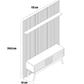 - Espaço para TV no Painel: (L x A): 1,790 x 1,200 m;