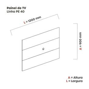 Painel central de TV Pandin Linha PE40, em MDP medindo 120cm de Altura e 90 cm de Largura 1,5 cm de profundidade ideal para completar a sala de reunião, salas de estar e ou outros ambientes, suporta TV de até 5'p. Acabamento: Melamínico Ambiente Principal: Escritório Complexidade da Montagem: Baixa: pode ser montado por uma pessoa sozinha Cor: Imbuia Terra Cor do Produto: Imbuia Terra Cor Interna: Imbuia Terra Escala de Brilho: Semi-Fosco Ideal para TVs até (Polegadas): 45 Itens Inclusos: 1 Painel, Kit Ferragens e Manual de Montagem Linha ou Coleção: PE40 Manual de Montagem e Instalação: https://cdn2.madeiramadeira.com.br/atributo/pandin/715170-11-t125-0521.pdf Material Principal: MDP Necessita Montagem: Sim Origem do Produto: Nacional Painel para TV Integrado: Sim Peso: 12.7 Possui Espelho: Não Possui Possui iluminação: Não Possui Pés: Não Possui Portas: Não Possui Prateleiras: Não Recomendações de Uso, Manutenção e Limpeza: Limpeza deve ser feita com um pano levemente umidecido e um pano seco. Sistema de Montagem: Parafusos