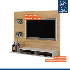 O Painel Hades da Valdemóveis foi criado pensando em ocupar o mínimo de espaço, e por isso tem apenas 145 cm de largura. Possui nicho para aparelhos eletroeletrônicos, compacto para pequenos ambientes. Comporta TV de até 46 Polegadas e o suporte para TV já vem incluso. Garantia de até 90 dias por defeito de fabricação. Montagem não inclusa.
