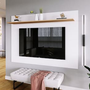 O Painel para TV Columbia é ideal para sua sala! Com designer moderno e muito funcional ele conta com amplo espaço e uma prateleira versátil que comporta perfeitamente os mais variados tipos de objetos de decoração. Com amplo espaço livre no painel ele comporta TVs de até 50 polegadas! Acabamento: Marromamínico Acabamento da Prateleira: Marromamínico Ambiente Principal: Sala de Estar Complexidade da Montagem: Baixa: pode ser montado por uma pessoa sozinha Cor: Branco/Amadeirado Cor do Produto: Branco/Amadeirado Cor Flex: Amadeirado Montana Cor Interna: Branco Escala de Brilho: Semi-Brilho Escala de Brilho da Prateleira: Semi-Brilho Ideal para TVs até (Polegadas): 50 Informações Complementares: O produto não acompanha suporte para TV Itens Inclusos: 1 Painel, Kit Ferragens e Manual de Montagem Manual de Montagem e Instalação: https://cdn2.madeiramadeira.com.br/atributo/drw-moveis/976187-manual-drd-web.pdf Material da Prateleira: MDP Material Principal: MDP Montagem Flex: Não Necessita Montagem: Sim Origem do Produto: Nacional Peso: 17,7 kg Peso Máximo por Prateleira: 3 kg Possui Espelho: Não Possui iluminação: Não Possui Pés: Não Possui Portas: Não Possui Prateleiras: 01 Possui Tomada: Não Possui Vidro: Não Quantidade de Nichos: Não Recomendações de Uso, Manutenção e Limpeza: Limpar com pano umedecido, sem adição de produtos químicos. Sistema de Montagem: Parafusadeira, trena, chave Philips, parafusos, pregos, cantoneira e cavilhas. Suporte de TV Universal Incluso: Não