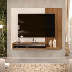 Painel para TV Ate 50 Polegadas Ripado 2 Prateleiras Nando Freijó Off White DJ Móveis