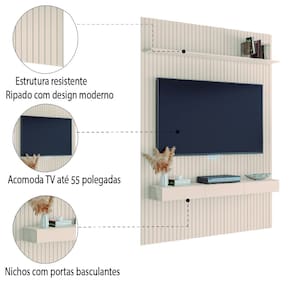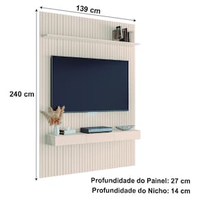 O Painel Arbo 1,39x2,40m é perfeito para quem quer dar um toque mais elegante ao ambiente! Com estrutura resistente e detalhe ripado em design moderno, conta com uma prateleira e um nicho com duas portas basculantes, ideais para acomodar objetos de decorações e aparelhos eletrônicos e, além disso, pode ser combinado com outros móveis e acomoda TV de até 55 polegadas!