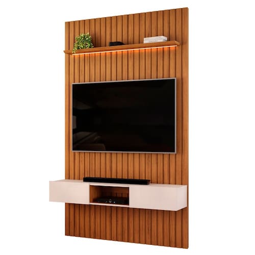 Com um design moderno e sofisticado, o conjunto Montreal une elegância e funcionalidade para transformar o ambiente. Produzidos com pintura UV de 8 camadas, oferecem acabamento superior, maior durabilidade e resistência ao desgaste do tempo. O painel com frisado autêntico traz charme e personalidade, enquanto a prateleira superior extensa com iluminação em LED valoriza a decoração e cria um toque de aconchego e modernidade. Já o nicho espaçoso com duas portas basculantes garante praticidade e excelente espaço para armazenamento de aparelhos eletrônicos e objetos diversos do dia a dia. Com estrutura elegante e design moderno, o conjunto suportam TV's de até 55 polegadas, tornando-se a escolha ideal e destaque para a sua sala de estar.