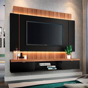 Painel para TV até 55 Polegadas com Led Rubi Preto/Nature como todo cliente tem o desejo de Inovar o espaço com um desing Único e Diferenciado, chegou esse modelo Incrível para você. Possui Visual marcante com fita de LED que iluminam e ralçam os detalhes ripado, portas basculantes com dobradiças metálicas e puxadores em alumínio na cor champanhe.