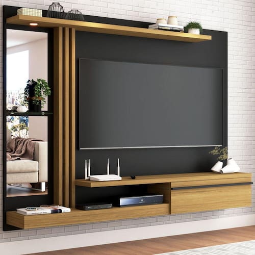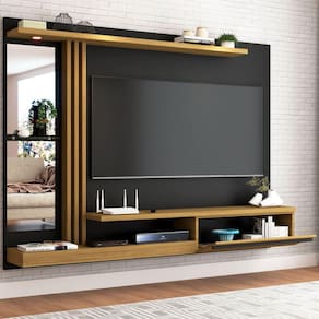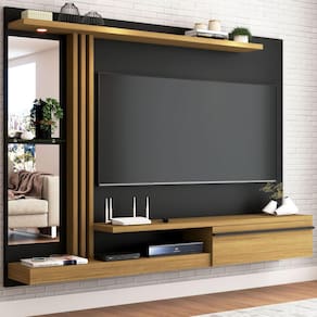 O(a) Painel para TV Até 55 Polegadas com Led Pequim 1 Porta Preto Fosco/Cinamomo - Loja é produzido em MDF e MDP na escala de brilho Fosco e Semi-Brilho, e possui um grau de dificuldade de montagem: Médio.