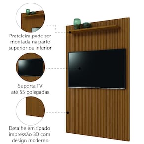 Quer ter sua sala com uma parede toda em detalhe ripado? O Painel para Tv Egeo com 1,35 m de largura, agregando beleza e elegância ao ambiente. Possui uma prateleira, ideal para acomodar objetos de decoração. Além de lindo e versátil, pode ser combinado com diversos outros móveis. Seu material de alta qualidade da resistência e durabilidade ao móvel, é adequado para televisores de até 55 polegadas.