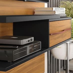 O Painel NT 1115 da Notável Móveis possui detalhes que irão valorizar ainda mais seu ambiente! Prateleiras de vidro 8mm, luz de Led, belíssimo puxador curvado em alumínio e pistão a gás para auxiliar na aberta da porta basculante, são diferenciais que proporcionam um design impecável ao produto.