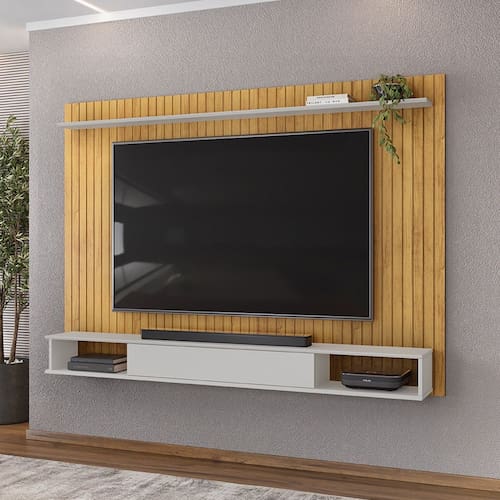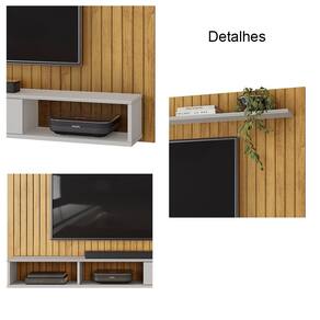 Características: Estrutura em MDF e MDP Acabamento UV Frisos Decorativos em toda Extensão 01 Prateleira 01 Porta de Correr 03 Nichos Suporta: Painel 40 kg e Base 10 kg Ideal para TV até 70 Polegadas