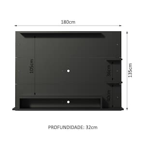 Medidas totais do painel: 135 cm de altura x 180 cm de largura x 32 cm de profundidade.