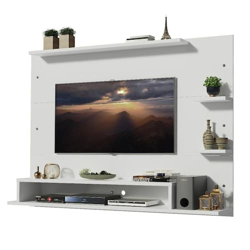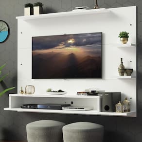Com capacidade para TV até 60 polegadas, o painel conta com uma prateleira grande na parte superior e duas prateleiras menores na lateral, com ótima espessura. Assim, há espaço de sobra para a disposição dos itens decorativos.