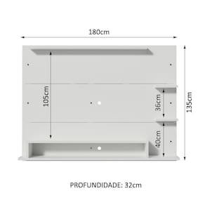 Medidas totais do painel: 135 cm de altura x 180 cm de largura x 32 cm de profundidade.