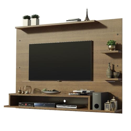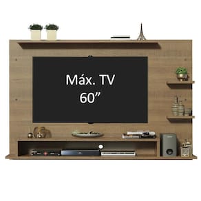 Com ótimo tamanho, comporta TV de até 60 polegadas. A parte baixa contém um nicho pensado especialmente para uma boa disposição dos aparelhos eletrônicos. Além disso, o painel conta com duas aberturas que servem para a passagem de fios e cabos. Assim, você evita aquela bagunça indesejada e ainda deixa o ambiente mais clean.