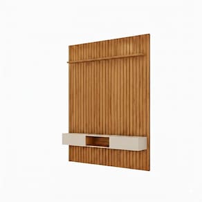 o Painel Ripado Trento conta com uma ampla prateleira de 25cm de espessura e com borda chanfrada, onde você pode