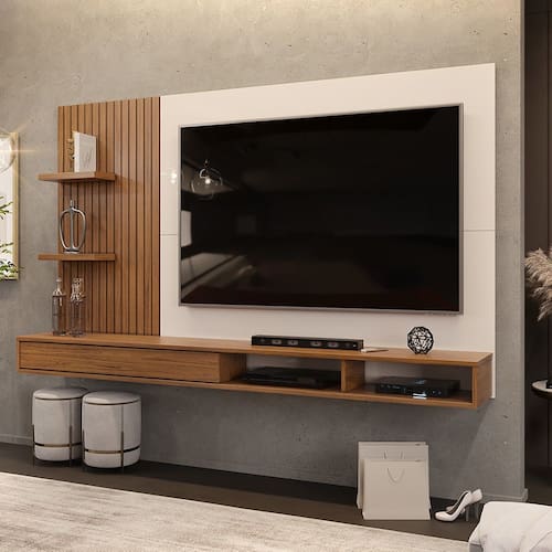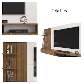 Características: Estrutura em MDF e MDP Acabamento UV Frisos Decorativos 02 Prateleiras de 25mm 01 Porta Deslizante 03 Nichos Suporta: Painel 40 kg e Base 10 kg Ideal para TV até 60 Polegadas