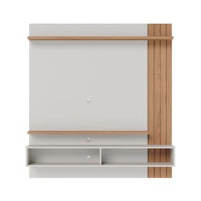 Minimalista e clean, o Home Suspenso Juriti é um painel funcional e uma ótima opção para clientes que buscam um móvel para otimizar o espaço para TV sem abrir mão de televisores maiores, seja ele na sala de estar, home cinemas ou até mesmo em quartos. Com ripados decorativos em sua lateral, possui uma prateleira superior e outra inferior, além de duas portas basculantes com espaço interno para acomodar objetos de maneira prática e organizada. Suporta TVs de até 65 polegadas. Acabamento: Pintura UV Acabamento da Porta: Pintura UV Acabamento da Prateleira: Pintura UV Ambiente Principal: Sala de Estar Complexidade da Montagem: Média: pode ser montado por mais de uma pessoa e/ou necessite de maior conhecimento para montagem Cor: Off White Matte/Freijó Cor do Produto: Off White Matte/Freijó Cor Interna: Off White Escala de Brilho: Fosco Escala de Brilho da Porta: Fosco Escala de Brilho da Prateleira: Fosco Ideal para TVs até (Polegadas): 65 Itens Inclusos: 1 Painel, Kit Ferragens e Manual de Montagem Manual de Especificação Técnica: https://cdn2.madeiramadeira.com.br/atributo/colibri-moveis/1184579-croqui-2.pdf Manual de Montagem e Instalação: https://cdn2.madeiramadeira.com.br/atributo/colibri-moveis/1184578-manual-de-montagem-1-643.pdf Material da Porta: MDP Material da Prateleira: MDP Material Principal: MDP Necessita Montagem: Sim Origem do Produto: Nacional Peso: 50,09 kg Peso Máximo por Prateleira: 2 kg Possui Espelho: Não Possui iluminação: Não Possui Pés: Não Possui Portas: 02 Possui Prateleiras: 02 Possui Tomada: Não Recomendações de Uso, Manutenção e Limpeza: Limpar utilizando apenas pano umedecido com água, nunca utilizar abrasivos ou esponjas de aço. Sistema de Montagem: Cavilhas, Parafusos e Cola Suporte de TV Universal Incluso: Não Tipo de Puxador da Porta: Embutido