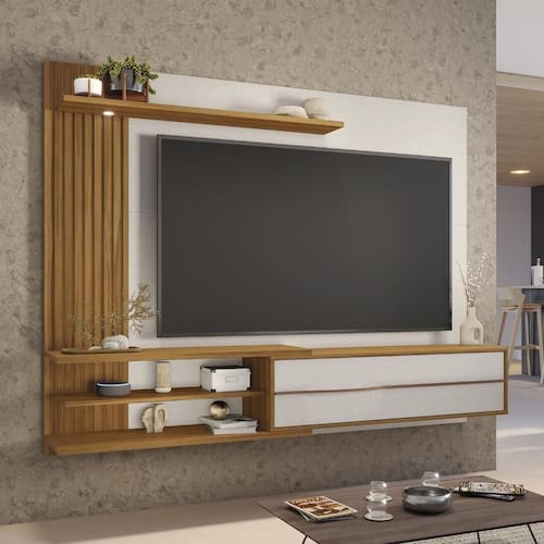Altura: 152 | Indicado para TVs: 65 Polegadas | Produto: Painel de TV | Profundidade: 29,8 | Largura: 180 | Quantidade de caixas: 2 | Cor: Off-White/Freijó