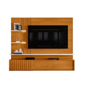 Características: Fabricado em MDP de 15, 25 e 40mm 3 Portas de correr 2 Prateleiras Fita de Led Luz Quente Revestimento: Hot Stamping Detalhes ripados Peso total suportado: 57 Kg Ideal para TV até 65 Polegadas